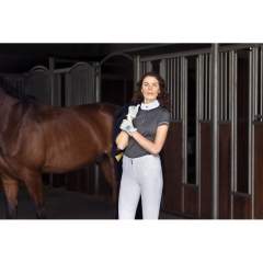 Leveä vyötönauha takaa optimaalisen istuvuuden. 4 suuntaan venyvää materiaalia, joka takaa istuvuuden useammallekkin ratsastajalle.