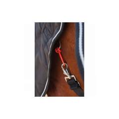 Kumisolki jalkalenkkeihin. Mikäli hevosen jalka tai loimi jää kiinni johonkin, turvakumi laukeaa ja vyö aukeaa.