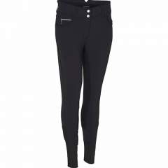 90% polyesteriä, 10% elastaania. Korkeavyötäröiset täyspitkät ratsastushousut, jotka ovat kudottua teknistä laatua ja erittäin hyvässä kestävyys. Vanhanajan mokkapaikka joka kuitenkin joustaa aavistuksen. Tone in tone -logon kirjonta