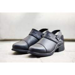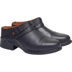 100% nahkapäällysteiset kengät, joissa iskunvaimentavat liu'un estämät kumipohjat. Kantapäässä sijaitseva nahkainen nauha takaa kengän paikallaan pysymisen käyttäessä. Voit myös kääntää nahkanauhan jalkapöydän päälle, jolloin kenkä on helposti jalkaan sujautettava.