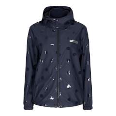 Holly-sadetakki hauskalla kiiltävällä palloprintillä. Vedenpitävä takki tiivistetyillä saumoilla. Joustava vartalon ja hihojen helma. Sivusaumassa taskut. Huppu on irrotettavissa painonapeilla. Kumilogopainatus rinnassa.