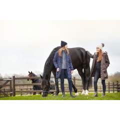 Hihoissa on rypytysvaikutus hihojen helmassa. Kaulushupun sisällä superpehmeä tekoturkis. Takana 2 läppää magneeteilla ratsastamisen takia. 2-suuntainen vetoketju edessä keskellä lisää joustavuutta ja tilavuutta satulassa. Vuoressa on viileä peitto-ommel ja lisälämpöä antava pehmuste. Kuorikankaat: 100% polyesteri, 75D X150D. 2/2 twilljäljitelmä muistikangas TPU-laminaatiolla. Täysin teipatut saumat. Vedenpitävyys: 5000mm. / Hengittävä: 3000mvp.