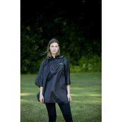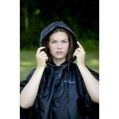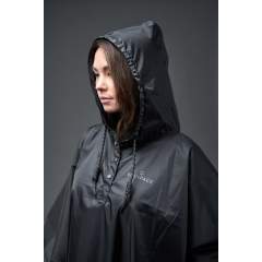 Hupullinen sadeviitta, jossa on edessä halkio, joka helpottaa pukemista kypärän kanssa.