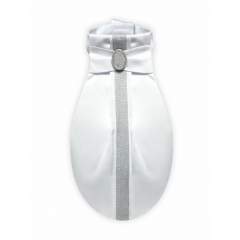 Elegantti plastrong hopealla koristetulla koruosalla sekä hopeisella kangaspalalla. Valmistettu laskostetusta tafti kankaasta. Tarra kiinnitys takana.