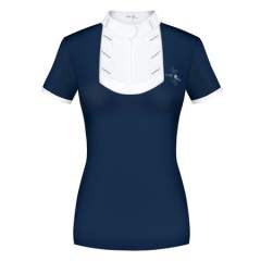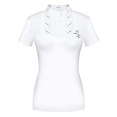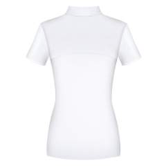 Erittäin tyylikäs ja poikkeuksellisen naisellinen siluetti. Paita on valmistettu elastisesta ja hengittävästä kierrätetystä kankaasta, jossa on UV-suoja. Parannettu ilmankierto selkäpuolella ja hihojen alla olevien rei'itetyn kankaan ansiosta, täydellinen kuumiin kisapäiviin. Kiinnitys edestä piilovetoketjulla. Valkoiset hihansuut kaikissa väreissä. Koristeellinen Fair Play -logo strassilla