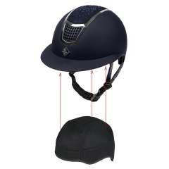 FairPlayn liner Quantinum VG1 ratsastuskypäriin. Valmistettu hengittävästä ilmaa läpäisevästä materiaalista. Konepestävä. Helppo kiinnitys tarranauhalla kypärän sisustaan.