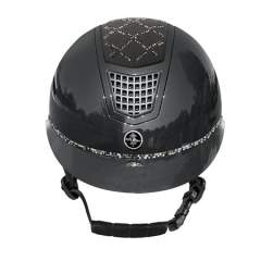 Moderni, muodikas ratsastuskypärä. Kypärän kuoressa ja visiirissä on kiiltävä pinta. Erittäin mukava memory foam -vuoren ansiosta. Pään ympärysmitan säätönuppi takana,. 3 pisteen säätöjärjestelmä. Tehokas ilmanvaihtojärjestelmä (ilmanvaihtoaukot edessä ja takana). Irrotettava ja pestävä vuori. Joust...