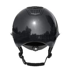 Moderni, muodikas ratsastuskypärä. Kypärän kuoressa ja visiirissä on kiiltävä pinta. Erittäin mukava memory foam -vuoren ansiosta. Pään ympärysmitan säätönuppi takana,. 3 pisteen säätöjärjestelmä. Tehokas ilmanvaihtojärjestelmä (ilmanvaihtoaukot edessä ja takana). Irrotettava ja pestävä vuori. Joustava visiiri. Valmistettu iskuja vaimentavasta materiaalista, jolla on entisestään paremmat suojaominaisuudet patentoitujen vaimentavien puolipallojen käytön ansiosta EPS-kuoressa