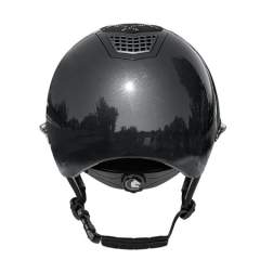 Moderni, muodikkas ratsastuskypärä. Kypärän kuoressa ja visiirissä on kiiltävä pinta. Erittäin mukava memory foam -vuoren ansiosta. Pään ympärysmitan säätönuppi takana,. 3 pisteen säätöjärjestelmä. Tehokas ilmanvaihtojärjestelmä (ilmanvaihtoaukot edessä ja takana). Irrotettava ja pestävä vuori. Jous...
