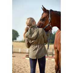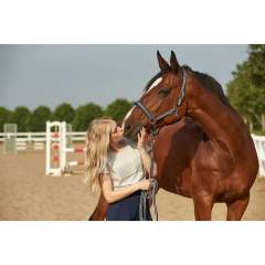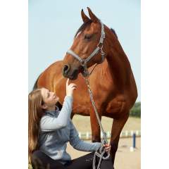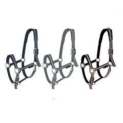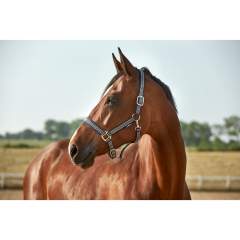 Raidallinen nailonriimu, jossa on mukavannäköinen silmiinpistävä metalliefekti. Metalliset soljet, joissa HorseGuard-logo, joka vastaa metalliraidan väriä. Mustassa värissä soljet ovat ruusukultaisia.