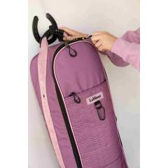 Pussissa on ripustuslokero, jossa on vetoketju ja kaksi klipsiä suitsien pitämiseksi turvassa, sekä pehmustettu kantokahva, joka helpottaa kantamista. Tyylikkäät kiinnitykset ja LeMieux-brändäys parantavat ulkonäköä.