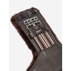 LeMieux Arika Simuwool nahkainen lyhyt panssarisatulavyö tarjoaa korkean suorituskyvyn tyylikkäässä ja hienostuneessa pakkauksessa. Pehmeästä, joustavasta nahasta valmistetussa vyössä on klipsi, jotta voit helposti kiinnittää apuvälineesi vyöhön. Karabiinikiinnittimessä on myös poikittaisnahkainen pohjasuojus tyylikkään viimeistelyn takaamiseksi.