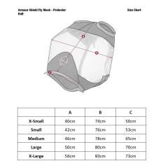Standard mallissa ei korvia tai turpaosaa. Uusissa ja parannetuissa Armor Shield Fly-maskeissa on nyt raskaampi 75% UV:lta suojaava verkko ja paranneltu sopivuus silmien kohdalla. Mukavuus on etusijalla pehmeillä hengittävillä bambuvuorinauhoilla kulmakarvojen ja nenän yli. Tämä auttaa estämään hankautumista ja varmistaa puhtauden silmien kohdalla. Joustava pääkappale ja kurkkuhihna mahdollistavat tiukan istuvuuden. Äskettäin lisätty otsatukan rako lisää mukavuutta ja turvallisuutta