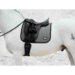 Joustavat D-rengasläpät varmistavat helpon kiinnityksen satulaan ja ovat riittävän ohuet, jotta D-renkaisiin mahtuu muitakin koulutusvälineitä tai lisävarusteita tarpeen mukaan. Hienovaraisella LeMieux-brändäyksellä varustettu satulavyön suoja-alue tarjoaa kestävää suojaa ratsastajan saappailta ja varmistaa huovan pitkäikäisyyden. Saatavilla koulu ja este malleissa.