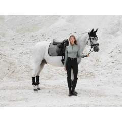 Kuten LeMieux-satulahuovalta voi odottaa, siinä on kitkaton mokkanahkamainen reunus, joka takaa sileän ja tasaisen profiilin. Ympäristöystävällinen bambusekoitteinen vuori on luonnostaan ??antibakteerinen ja kosteutta siirtävä, tarjoten mukavuutta jopa herkimmille hevosille.