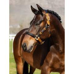 LeMieuxin kaunis ja ylellinen nahkariimu. Riimu on muotoiltu pehmeästä nahasta, vahvasta nailonista ja umpimetallisista liittimistä korkealaatuisen viimeistelyn saavuttamiseksi. Leveä, muotoiltu, painetta vähentävä niskahihna sekä nahalla pehmustetut poskihihnat, leuka- sekä turpahihna tarjoaa hevosystävällesi mukavuutta