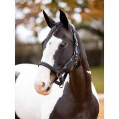 LeMieuxin kaunis ja ylellinen nahkariimu. Riimu on muotoiltu pehmeästä nahasta, vahvasta nailonista ja umpimetallisista liittimistä korkealaatuisen viimeistelyn saavuttamiseksi. Leveä, muotoiltu, painetta vähentävä niskahihna sekä nahalla pehmustetut poskihihnat, leuka- sekä turpahihna tarjoaa hevos...
