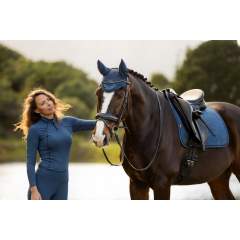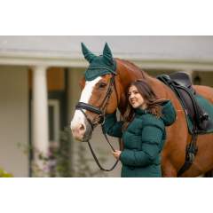LeMieuxin virkattu korvahuppu sävy sävyyn talven tuotteiden kanssa! Reunaa koristaa kaunis nyöritetty naru. Pehmeät lycra-kankaiset korvaosat. Huppu pysyy suitsien alla ja istuu hevosesi päähän juuri mukavasti.