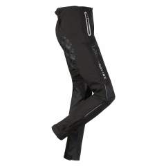 Vetoketjulliset taskut pitävät arvoesineet turvallisina ja kuivina sekä heijastavat nauhat taskujen ja säären ympärillä varmistavat, että sinut nähdään pimeälläkin. Joustavat jalkahihnat estävät housujen lahkeiden nousemisen ratsastuksen aikana. Täysin silikoninen toppaus takapuolessa varmistaa vakauden satulassa. Vahvistetut polvet ja säären sisäosa lisäävät kestävyyttä ja hidastavat kulumista. Joustava vyötärönauha antaa mukavan istuvuuden sekä housuissa olevat tarranauhat helpottavat niiden saamista ratsastushousujen tai farkkujen päälle.
