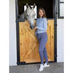 Tässä urheilullisessa tyylissä on imarteleva räätälöity istuvuus kätevillä sivutaskuilla sekä resorivyötäröllä. Säären lahkeessa on LeMieux-kirjonta ja silikonipainetut kiristysnauhat lisäävät tyyliä.