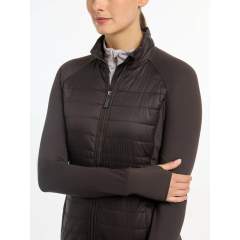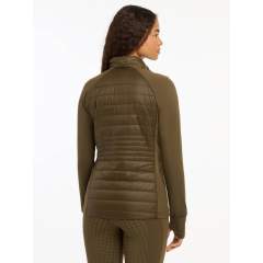 Pehmeät jersey hihat ja sivupaneelit imartelevampaa ulkonäköä varten. Höyhenenkevyet tikatut, kierrätetyllä materiaalilla täytetyt etu- ja takapaneelit pitävät lämmön kehossasi. Solakka olemus ei tunnu liian paksulta paksumman takin allakaan. Kaksisuuntainen vetoketju ja huomaamatommat LeMieux logot edessä ja takana.