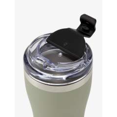 Mukana tulee tiivistä kumista valmistettu kansi, joka luo ilmatiiviin tyhjiötiivisteen. Kannessa on avattava reikä, josta voi helposti juoda. Juomasi ei kaadu kupista.