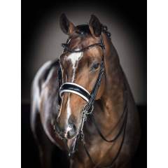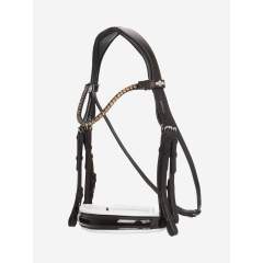 Erottuva irroitettava anatomisesti muotoiltu kristalli otsapanta ja geelipehmustettu kiiltonahkainen turpahihna kertovat erehtymättömästä LeMieux-tyylistä.