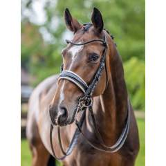 Nämä suitset on valmistettu korkealaatuisesta esiöljytystä italialaisesta nahasta, ja niissä on anatomisesti muotoiltu geelipehmustettu niskahihna, joka antaa tilaa korvien taakse.