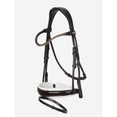 Anatomisesti muotoiltu pehmustettu niskahihna jakaa paineen tasaisesti päähän sekä antaa tarpeeksi tilaa korvien taakse. Irroitettava muotoiltu otsapanta on koristeltu tyylikkäillä kristalleilla.