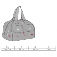 Helppo tapa pitää kypäräsi tai hattusi puhtaana sekä kuivana. Kaksi ulkotaskua kannusten ja muiden pienten tarvikkeiden kuljettamiseen. Allekirjoitetut metallimerkit. Kätevät kahvat ja vetoketju