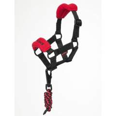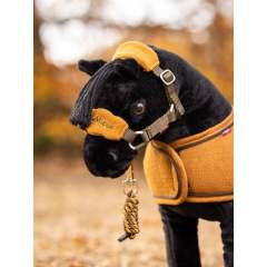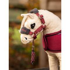 Suloisessa pienessä riimussa on pehmusteet turvalla ja niskahihnassa. Brodeerattu LeMieux brändäys. Riimu on jopa säädettävä niskasta. Mukana on myös samanvärinen riimunnaru!