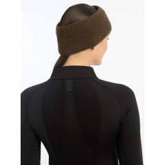 Pehmeä hieno chevron-neulekuvio luo tekstuuria, kun taas lämmin tekoturkisvuori pitää korvasi lämpimänä.