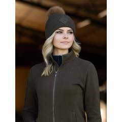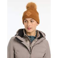 Pehmeä hieno chevron-neulekuvio uurretulla käänteellä ja lämmin tekoturkisvuori pitää kylmät vedokset loitolla. Irrotettava tekoturkista valmistettu pom pom antaa ylimääräisen talvisen viimeistelyn.