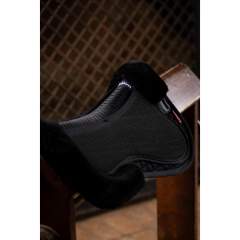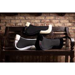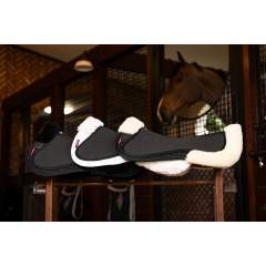 Yleismallinen halfpadi Merino+ lampaankarvapehmusteilla sään kohdalla ja satulan takana.