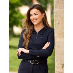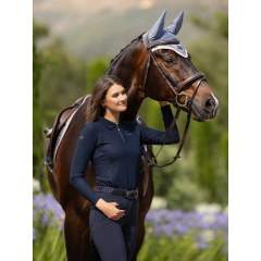 Puolivetoketju, uurrettu jacquard-kaulus ja LeMieux-logo niskan takana lisäävät tyylikkään ja hienostuneen viimeistelyn.