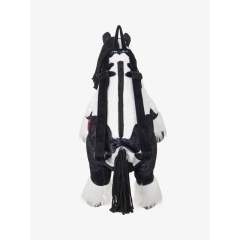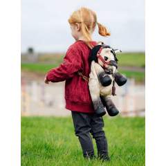 Säädettävät olkahihnat ja pieni lenksu, josta repun voi ripustaa. Vetoketju suljenta ponin selässä vuoratulla sisätaskulla. Ponille voi pukea leluponi tarvikkeita ja letittää sen harjan ja hännän