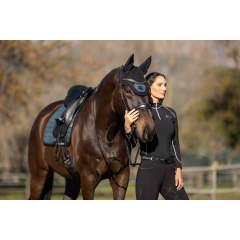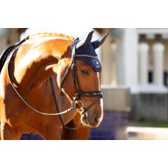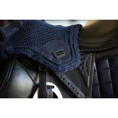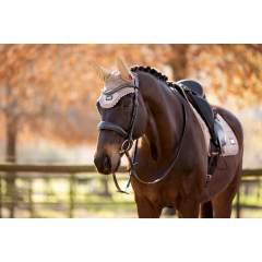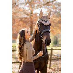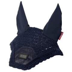 Pehmeät joustavat lycra-korvat antavat mukavan istuvuuden hevosellesi. Korvahuppu on viimeistelty LeMieux-kohokuvioidulla metallikuviolla, joka on asetettu kumipohjaan.