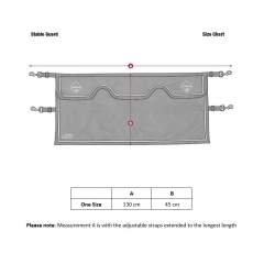 Kestävä tallivartija karsinan oviaukkoon, kun teet askareita karsinassa tai sen ulkopuolella ja haluat pitää hevosesi karsinassa, ilman, että joudut avaamaan joka kerta ovea. Sopii myös kisapaikoille.