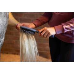 Lemieux Tangle Tidy Plus jouhiharja kahdessa eri värissä. Aaltoilevat harjakset auttavat selvittämään takkuja ja solmuja harjassa. Ergonomisesta kahvasta saa hyvän otteen.