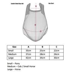 Helposti säädettävä velcro-tarranauhalla. Erittäin hienoa mesh verkkoa, joka suodattaa siitepölyä, pölyä sekä muita ilmassa syntyviä hiukkasia. Erinomainen pitämään ötökät loitolla. Helpottaa myös headshaking oireita. Leikattuun etuosaan mahtuu flash- ja meksikolaiset turpahihnat. Laillinen käytettäväksi BD-, BE- ja BS-kilpailuissa.